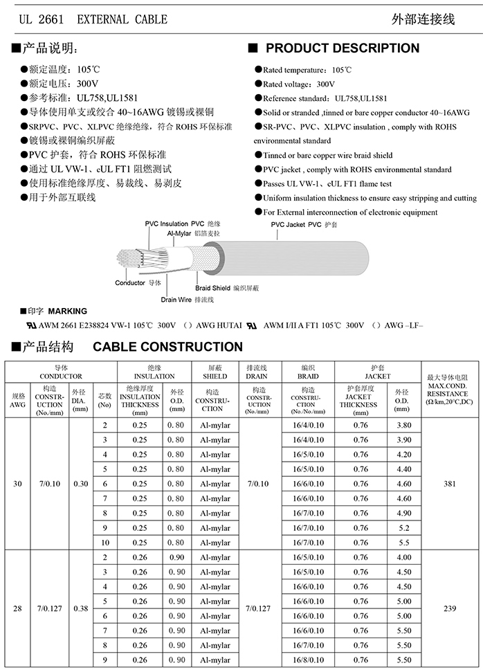 >>UL 2661 EXTERNAL CABLE 外部连接线